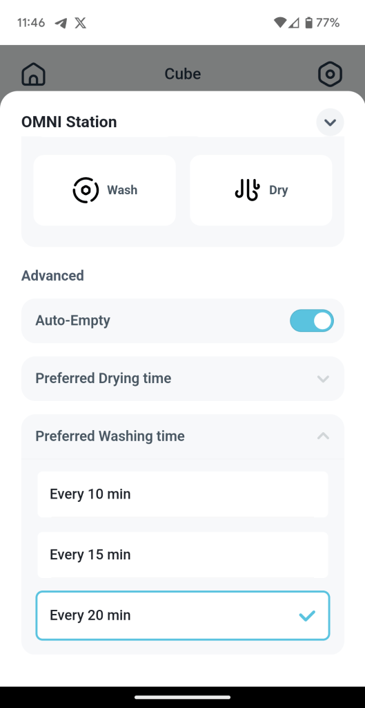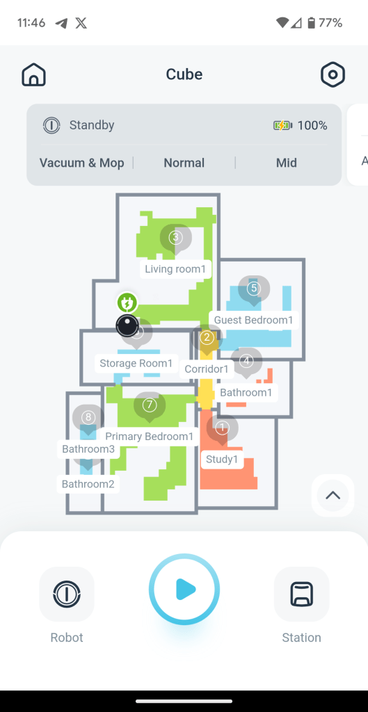 In the app controls are split between the robot and the station, with the former able to control the intensity of the mop and vacuum, set schedules, the order in which the robot cleans rooms in your home, and more, while the latter can let users manually clean or empty the robot and adjust the mop drying time and washing intervals – the robot will go back to the station every so often during a cleaning run to rinse the mop. I think many robot vacuum apps can be intimidating for users, but this one is reasonably simple and easy to use.