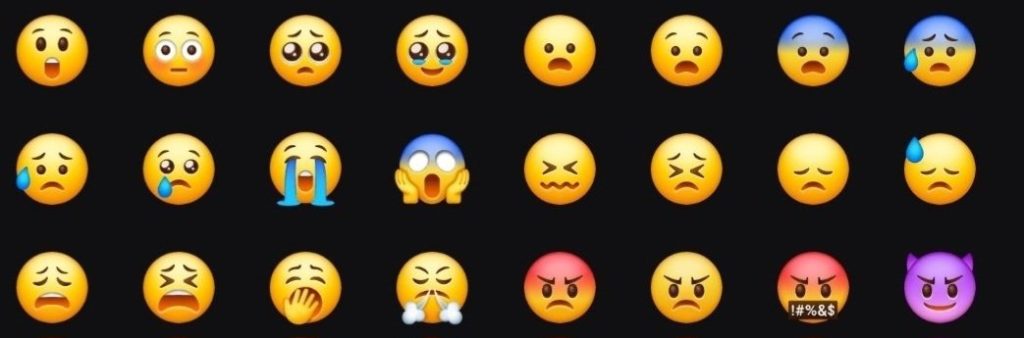 Another screenshot shows a few more designs including scared, angry, and crying emotions.