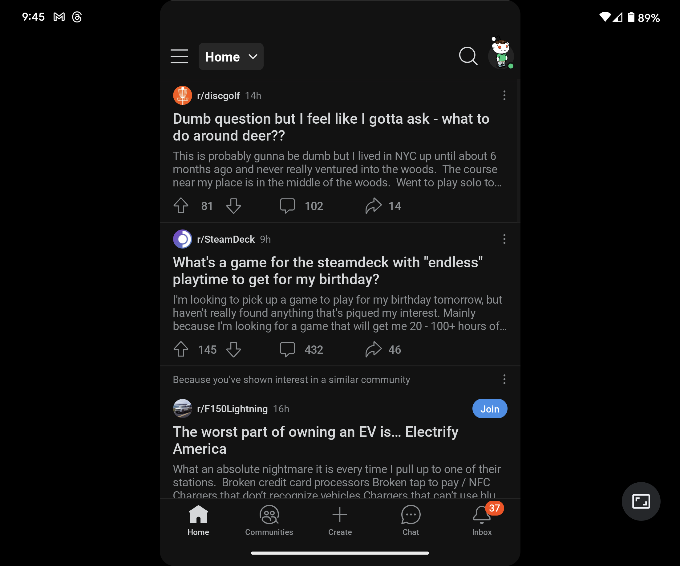 Then there’s Reddit, the official client that exists on its own now that Reddit has killed third-party clients that were better on bigger screens. Changing this one to fullscreen isn’t as polished as it is on Instagram, but it works.
