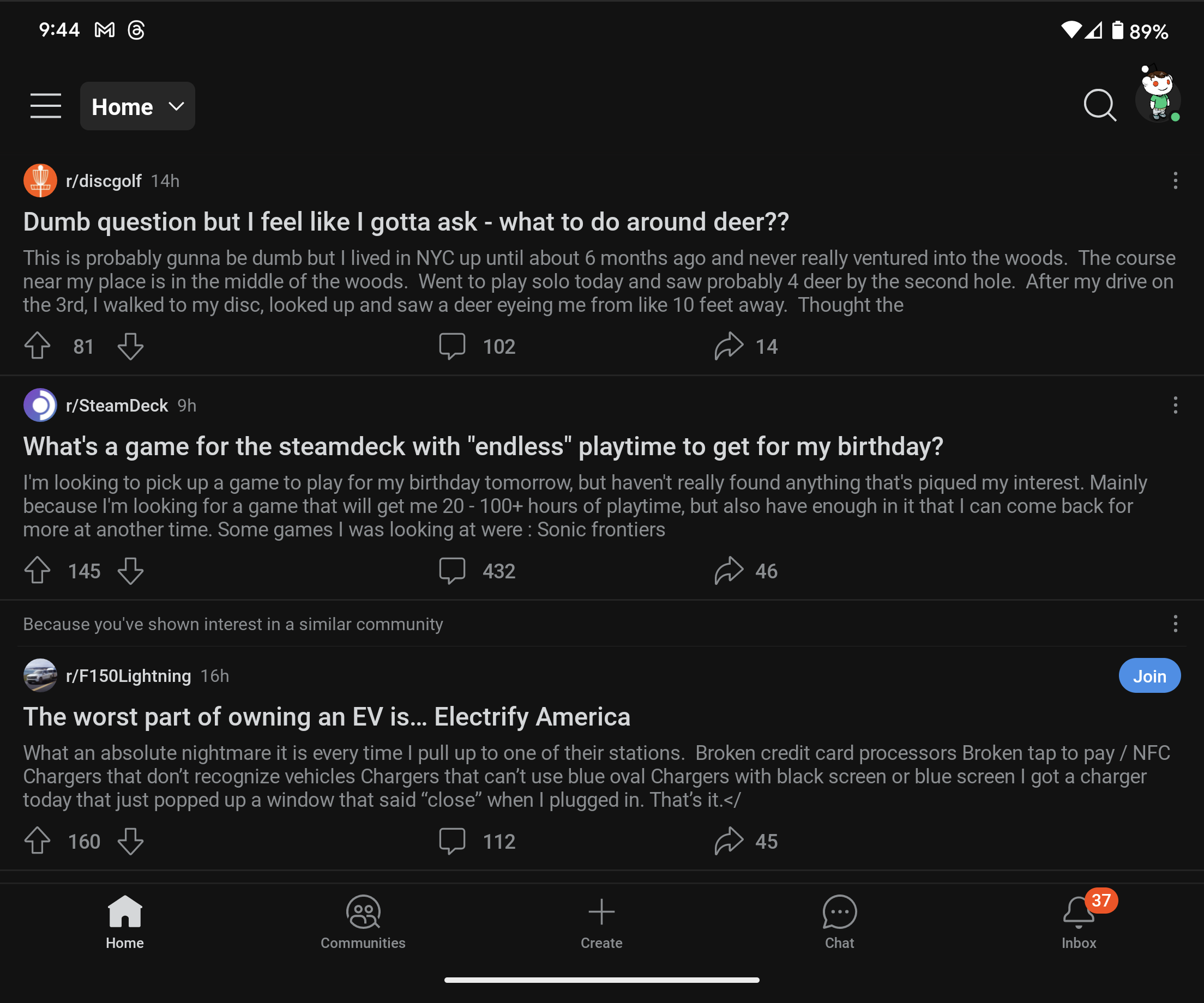 Then there’s Reddit, the official client that exists on its own now that Reddit has killed third-party clients that were better on bigger screens. Changing this one to fullscreen isn’t as polished as it is on Instagram, but it works.