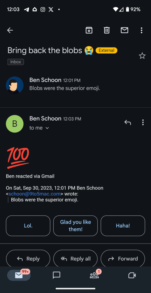 It’s unclear when Google intends to roll out emoji reactions on Gmail, but the fact that the functionality is working behind the scenes in the Android app makes it pretty clear this is coming sooner rather than later.