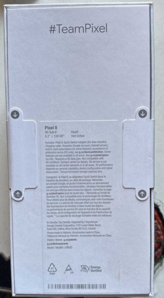 Updated to include pictures of Pixel 8 box.