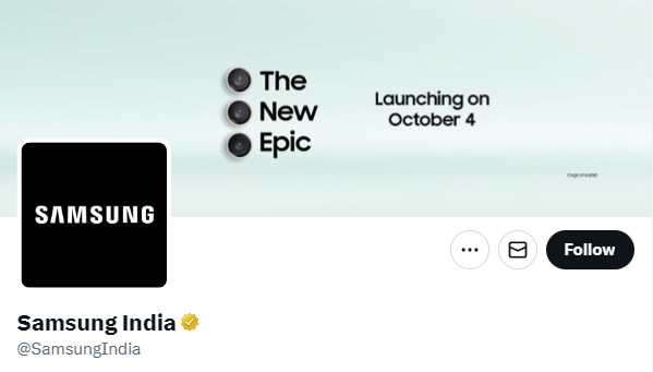 On the @SamsungIndia Twitter/X account, the company confirms that “The New Epic” will be “Launching on October 4” through a teaser image in the account’s header. There’s no accompanying tweet, but it’s pretty clear what the company is teasing.