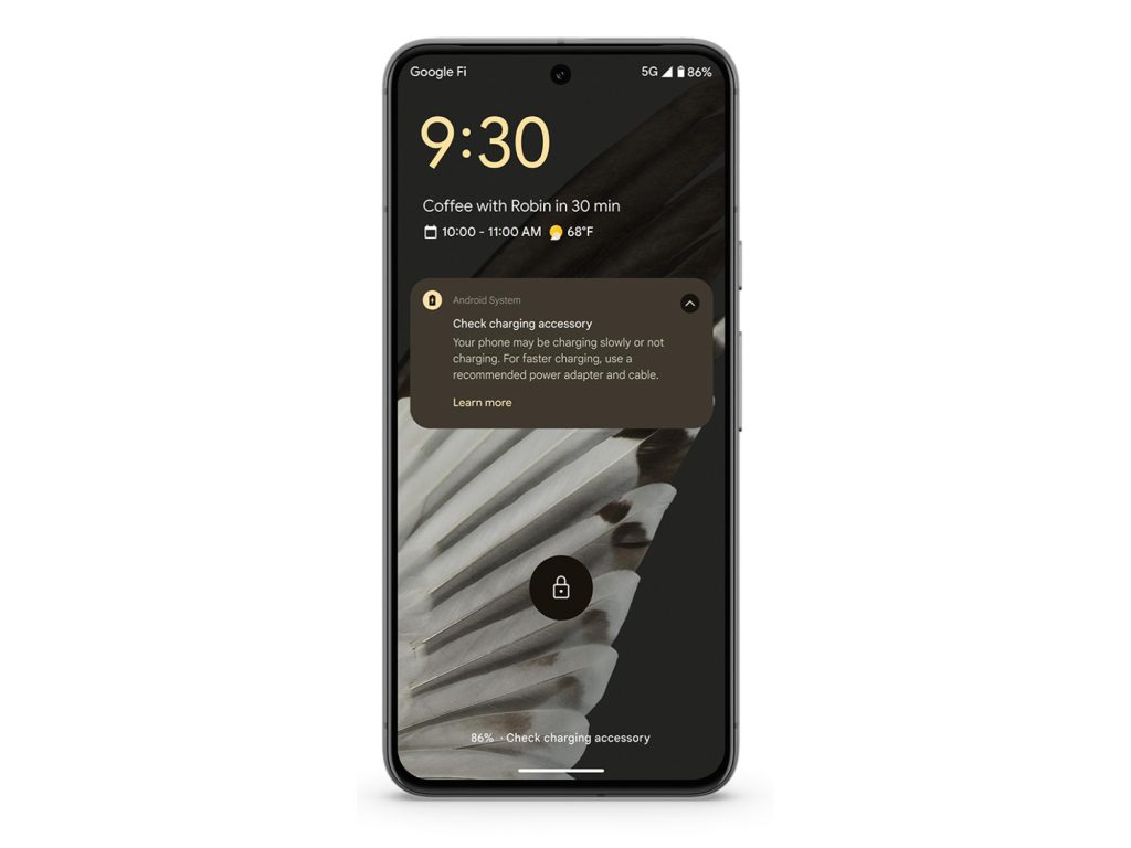 Meanwhile, Google will warn you about bad and/or incompatible USB-C cables with a “Check charging accessory” system notification. That message will also appear at the bottom of the lock screen.