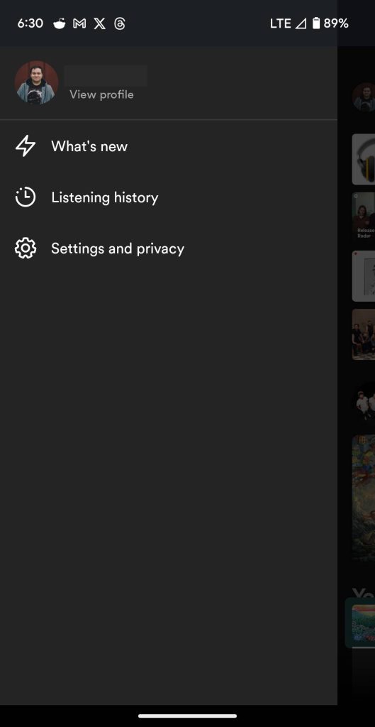 The bigger change is with the new addition of a sidebar (hamburger) menu. By tapping on your profile picture, the menu is revealed with shortcuts to view your profile, access settings, view listening history, and also the “What’s New” feed that primarily focuses on new podcasts and albums from artists you follow.
