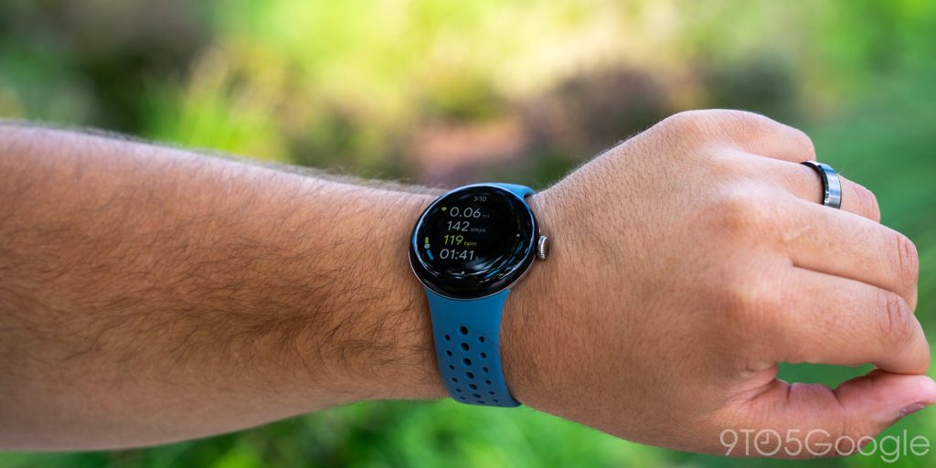 Rather, the new chip shows its strength in just general use. The first Pixel Watch wasn’t exactly slow or laggy most of the time (occasionally in heavy load situations and the exercise UI), but the sequel is smooth and speedy throughout, and a noticeable improvement. I’ve not noticed any hiccups in scrolling or moving through apps, which is unprecedented for me on a smartwatch. I think Qualcomm’s chip paired with Google’s experience really speaks for itself, as not even the TicWatch Pro 5 I used earlier this year could match the same level of smoothness.