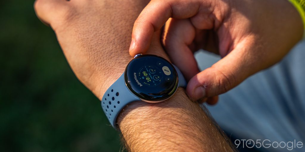 Rather, the new chip shows its strength in just general use. The first Pixel Watch wasn’t exactly slow or laggy most of the time (occasionally in heavy load situations and the exercise UI), but the sequel is smooth and speedy throughout, and a noticeable improvement. I’ve not noticed any hiccups in scrolling or moving through apps, which is unprecedented for me on a smartwatch. I think Qualcomm’s chip paired with Google’s experience really speaks for itself, as not even the TicWatch Pro 5 I used earlier this year could match the same level of smoothness.
