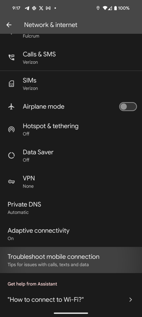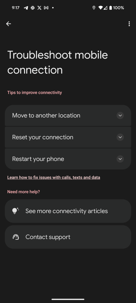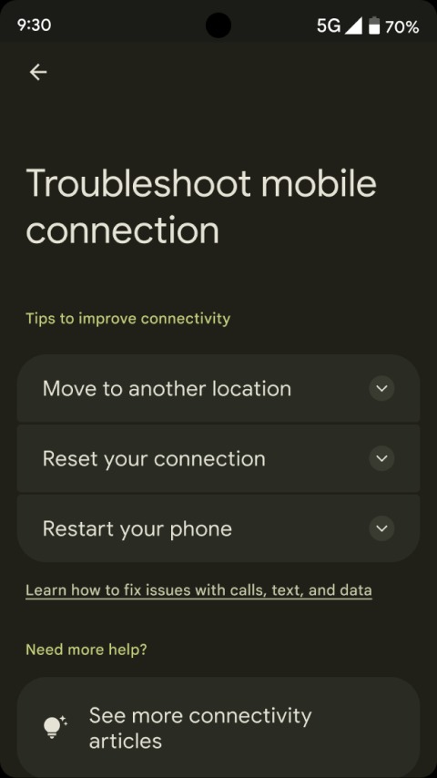 Another area that Google highlights is in fixing your mobile connection, as pictured below.