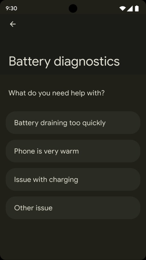 The Pixel Troubleshooting app allows you to receive support when you need it. With this app, you can troubleshoot and diagnose common issues on-device with easy self-serve steps to help you smoothly and quickly work through issues. When needed, you can easily connect with Pixel Care support agents and share your diagnostic information for even better support.