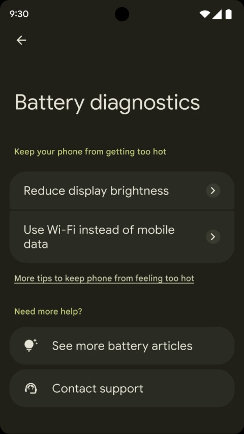 The main area this addresses is battery, where the Troubleshooting app will help walk users through issues with the battery draining quickly, charging issues, or if the phone itself is running too hot. The app will automatically check to see if any settings are running wild, and then offers some support links and, most importantly, a quick shortcut to connect with a support team.