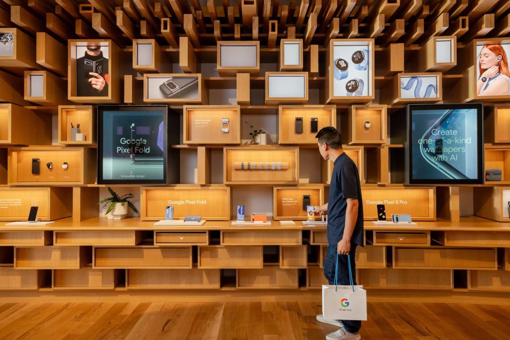 After opening New York locations in Chelsea and Williamsburg, the Google Store now has a West Coast outpost. Wood is the prominent material with a long and winding “cabinets of curiosities” showcasing products. There’s also a literal “kids space” with a music experience running on Pixel Tablets.