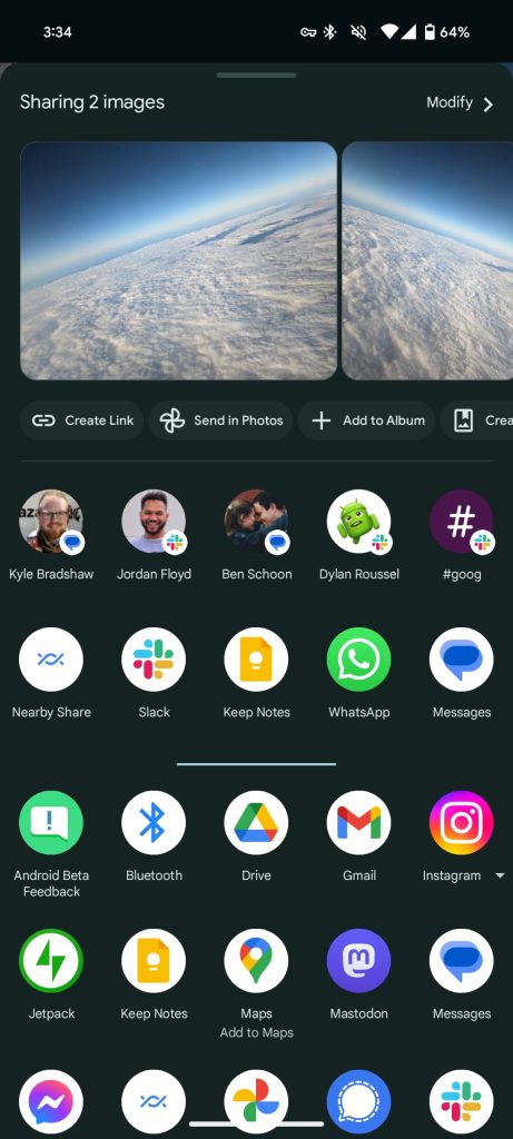 We’re seeing this new share sheet rolled out with version 5.65 of Google Photos today on Android 14 Pixel phones. It’s not yet appearing on large-screen (Pixel Tablet) devices that we checked this afternoon. The share sheet will presumably remain unchanged on Android 13 and earlier.