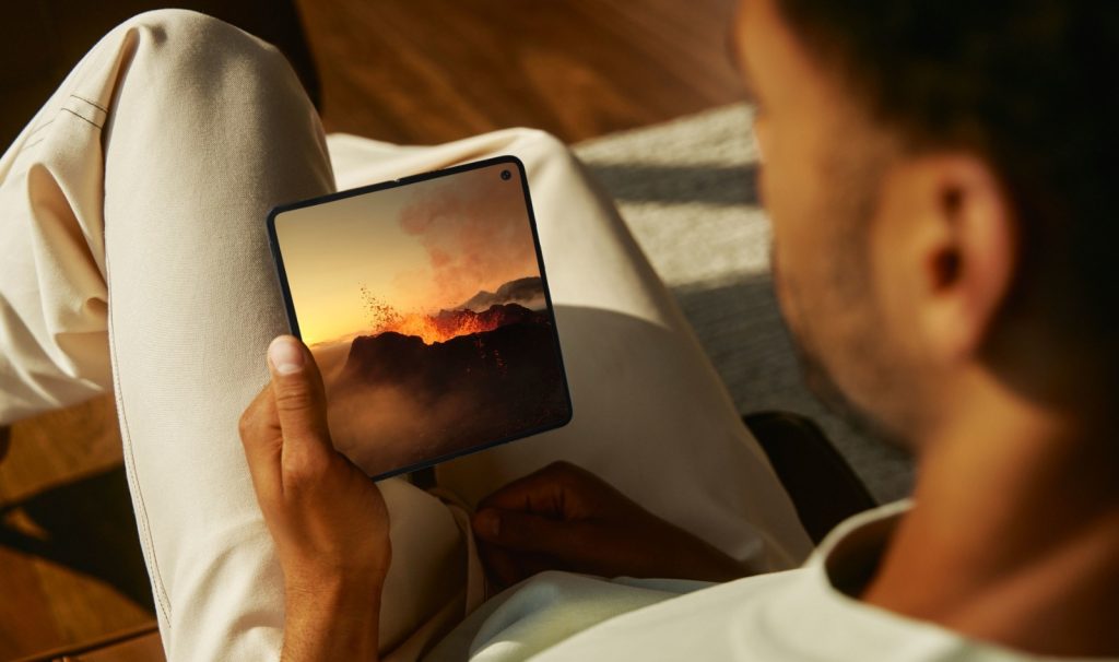 Starting with the design, images shared by all three give us a sharp, high-res look at the design of OnePlus Open. This includes the camera bump that OnePlus has kept hidden in previous official teasers – a camera bump that is huge and takes up over 1/3 of the space on the back of the device.