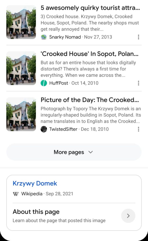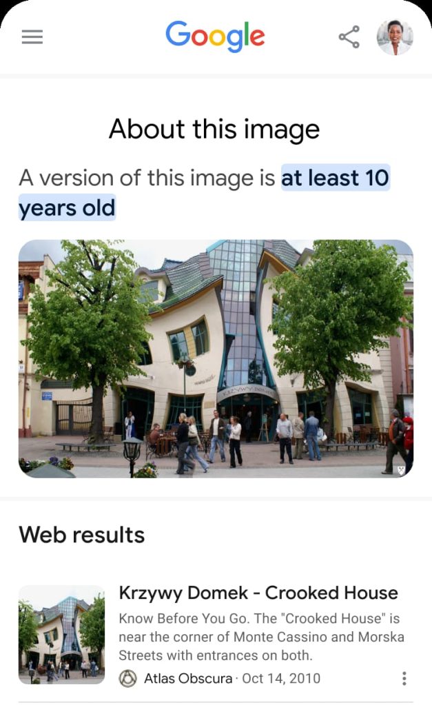 “About this image” starts by telling you how old a picture or similar photos are as determined by when Google Search first saw it. This might be helpful in determining “if an image is being taken out of context and shared in relation to a current event, but it’s actually much older.”