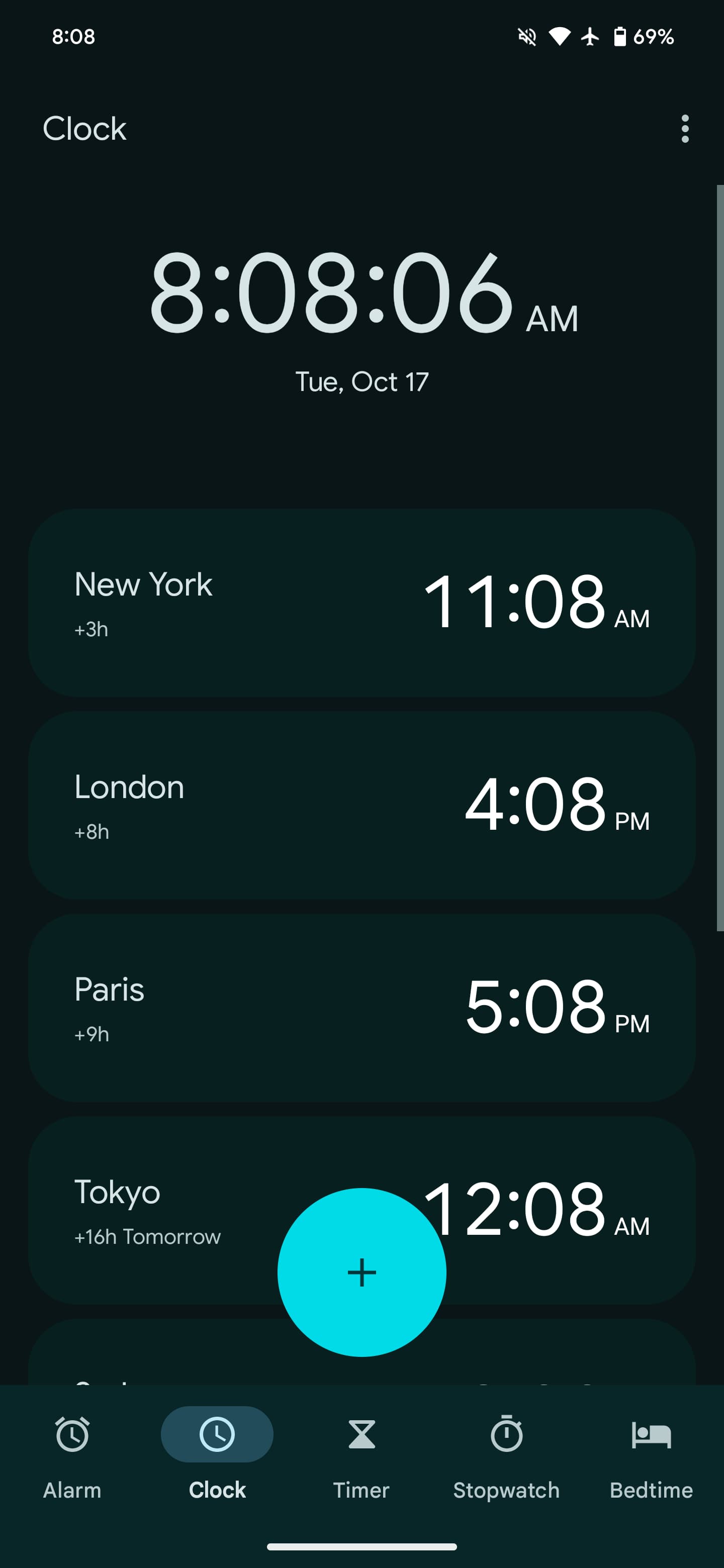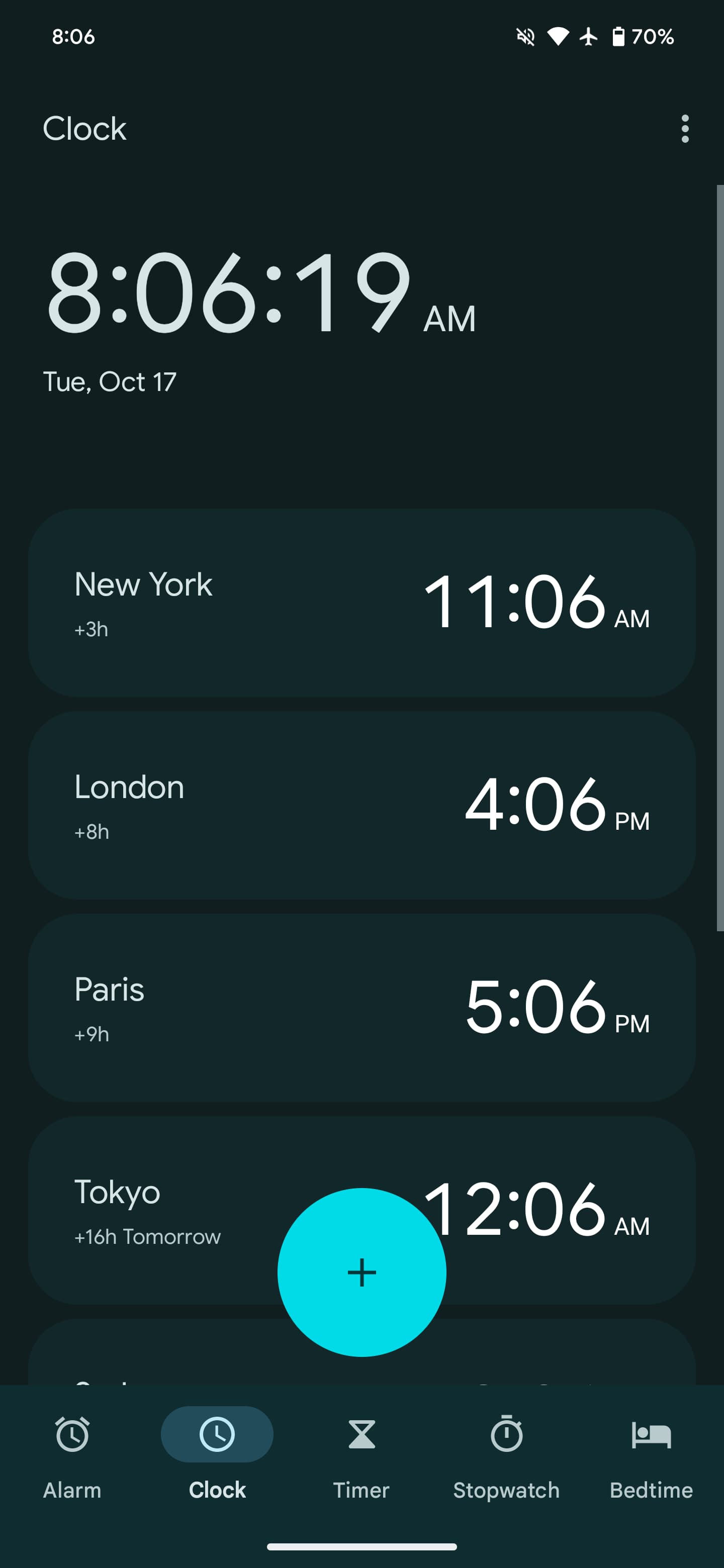 Meanwhile, version 7.6 makes one obvious visual change to the Clock tab, where the time and date at the top of the screen are now center-aligned instead of left-aligned.