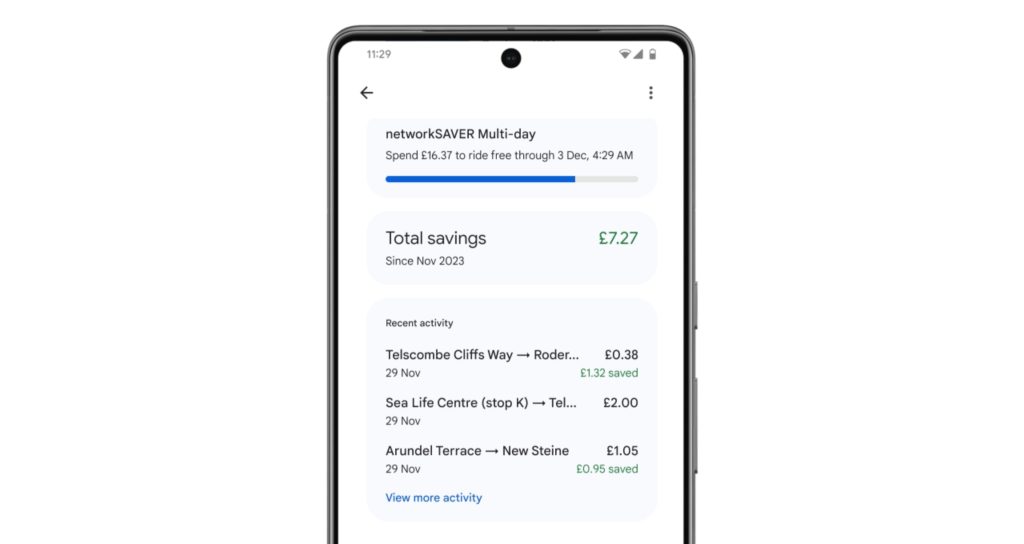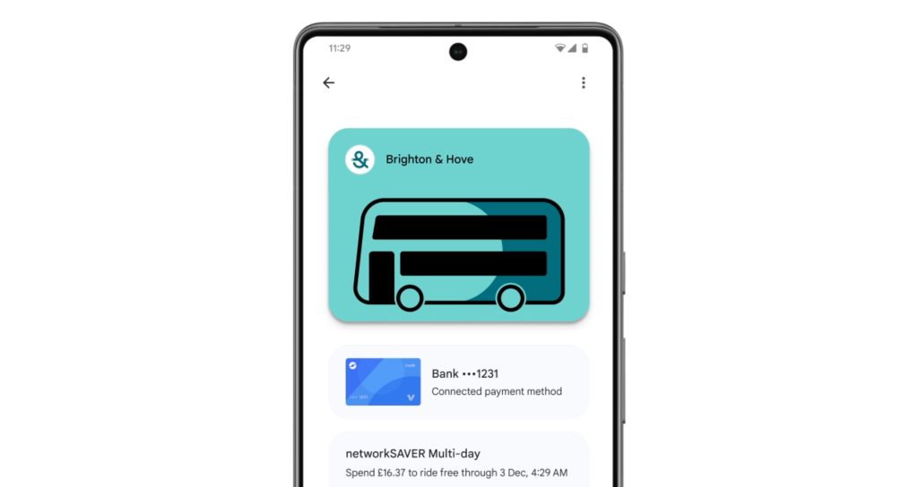 Google Wallet can also surface updates from the transit agency about changes and delays in this UI. This is launching first for Brighton and Hove Buses in the UK and will come to “more cities next year.”
