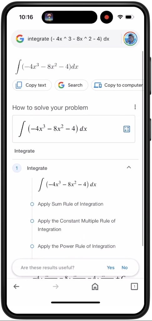 Google says Search now provides more help on “subjects like trigonometry and calculus.” A step-by-step explanation and solution will appear after you enter an equation or integral into the Search bar, or take a picture of the problem using Lens.