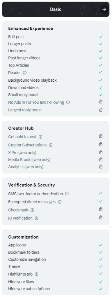 The bigger addition, we’d argue, is the new “Basic” Twitter/X subscription. This new $3/month (or $32/year) option unlocks many of the features that are actually a perk from Twitter/X’s paid offerings. This includes custom navigation, the ability to write longer tweets, the ability to download videos and post longer videos, as well as, most importantly, an edit button. There’s no “Verified” checkmark at this price, and creators can’t earn money back for their posts either, but this unlocked a lot of the useful stuff for a pretty reasonable cost.