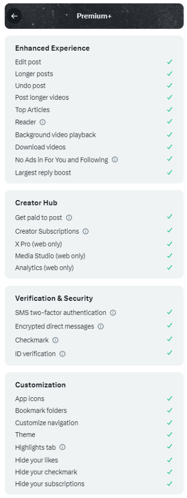 Beyond that, Twitter/X “Premium+” will also grant the “largest boost to your replies.” This effectively gives more weight to your tweets when they are viewed as a reply to another tweet.