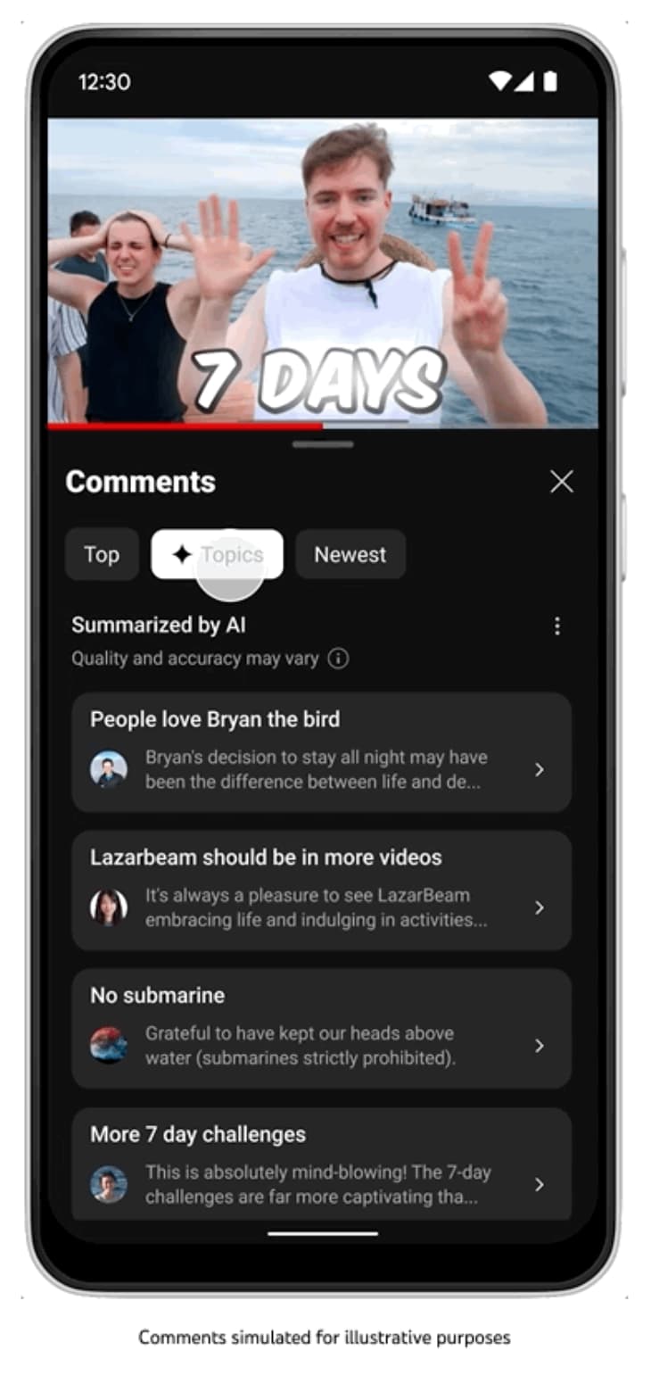 Meanwhile, YouTube is also using AI to organize “large comment sections of long-form videos into easily digestible themes.” When you open comments on mobile, you might see a new “Topics” section on certain videos. It appears alongside the “Top” and “Newest” sort options.