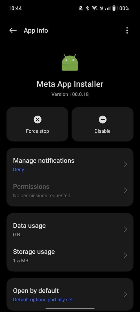 The apps aren’t bloatware in the traditional sense, where they are apps you can see in the app drawer, but rather, they serve the purpose of letting Facebook/Meta get around the Play Store for specific tasks. The installer app, for instance, can force updates on Meta apps, even if you initially downloaded them from the Play Store. Just like in 2020, too, these apps have system privileges that include installing apps and app updates and seeing information on the device. The installer app also explicitly has permission to “download without notification.”
