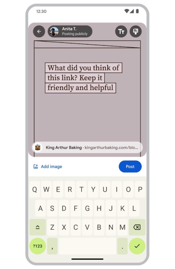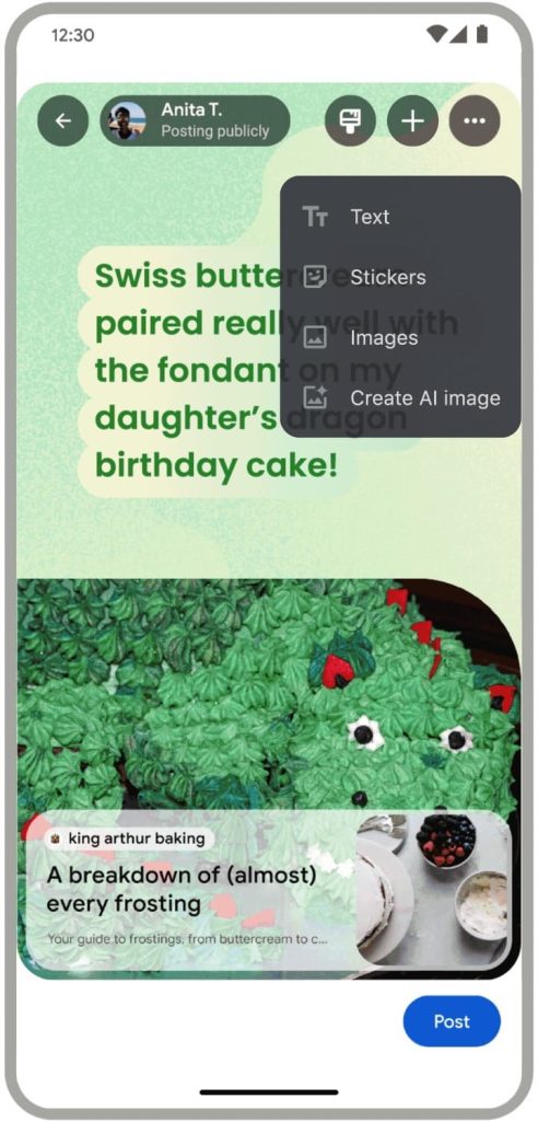 When creating a note, you can add text, images (from Image Search or your device), and stickers (which can be animated). There are also several backgrounds and the ability to adjust color. These options are all very straightforward if you’ve used a modern social network, while an upcoming feature will let you add an AI-generated image to the note.