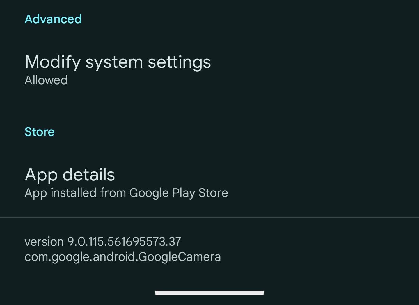 Package name at bottom of App info page
