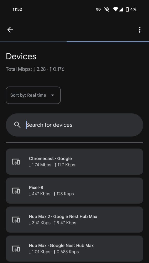 Opening the Wifi page and selecting the Devices page reveals a new “Search for devices” bar, which is quite thick. As you start typing, the list of what’s connected to your Google or Nest Wifi router will update. Results include both devices currently on your network and those “Offline.”