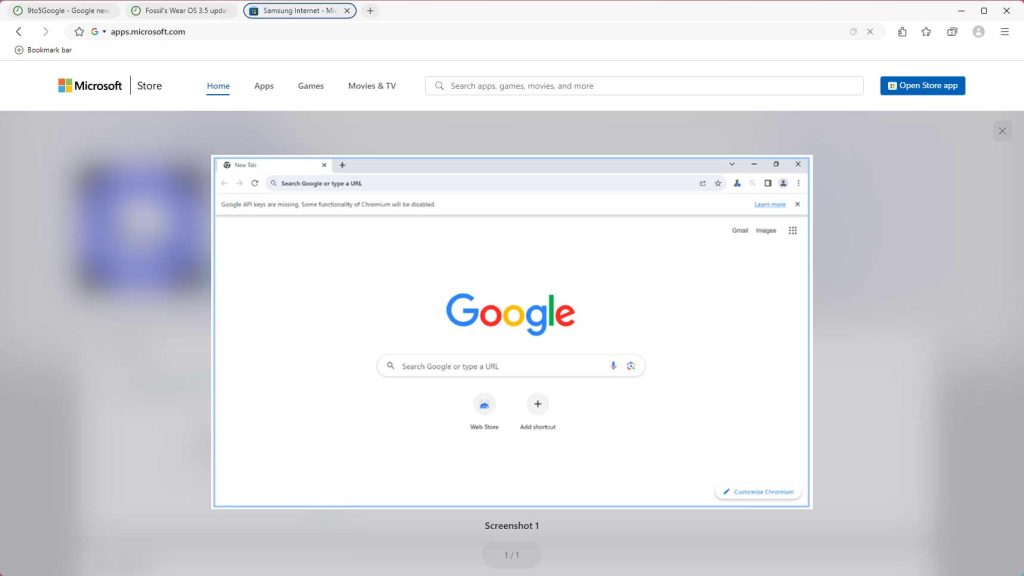 The kicker in all of this is the screenshot Samsung uses on the Microsoft Store page. If you guessed it’s a screenshot of Chrome on PC, you would be correct. Samsung neglected to include a screenshot of its own app on the store page, which poses questions as to how much of this mobile-gone-desktop web browser is original.