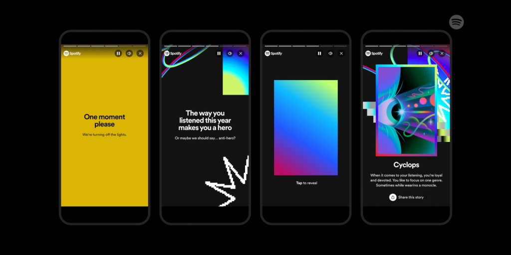 Spotify Wrapped takes users down memory lane through the songs and podcasts they were hooked on through the year. This time around, the design is pretty psychedelic and shows the peak times of the year when you listened to each of your favorite artists.