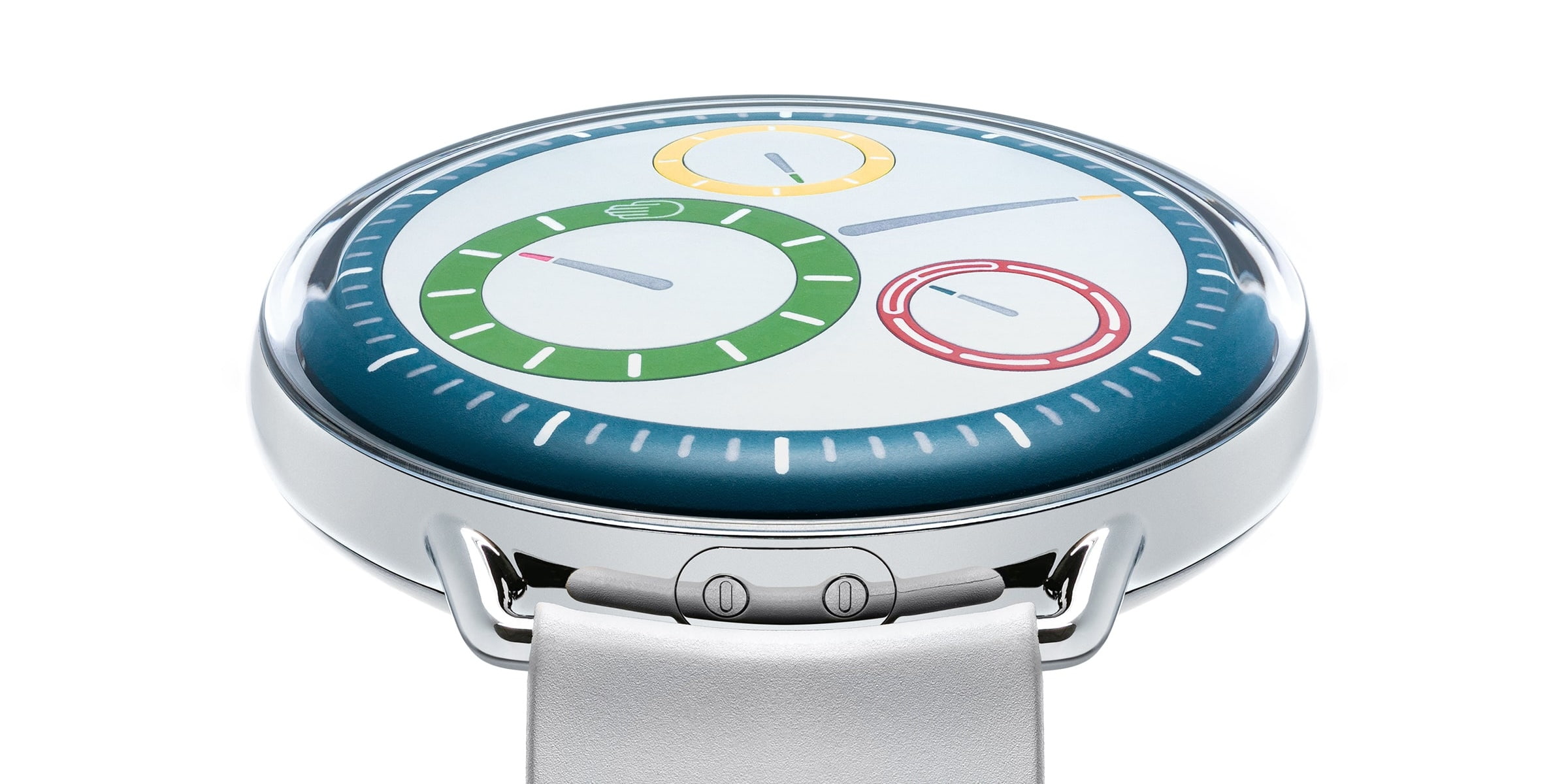 Swiss watchmaker Ressence says the case of the Type 1° Round evokes a “smooth pebble,” while Google has pointed to water droplets serving as inspiration for the Pixel Watch. Underneath the double-domed sapphire crystal is a convex dial with components themed in the four Google colors, though the shades are darker and more muted.