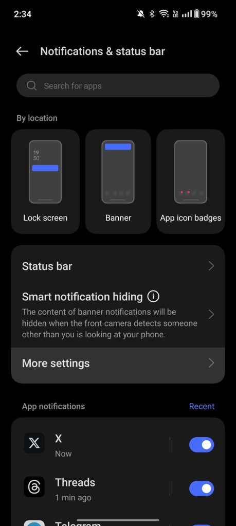 On OxygenOS 13, the version currently available to the OnePlus Open, notification history is found under Settings > Notification & status bar > More settings > Notification history. It’s buried three levels deep and there’s no mention that it exists on any of the prior pages.