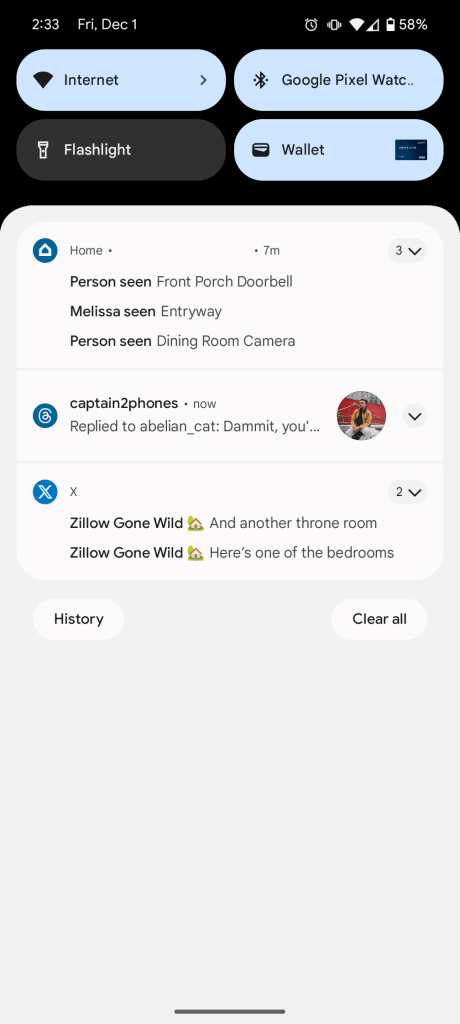 I absolutely love notification history on my Pixel. I use it all the time. Mainly because I accidentally swipe a notification away. 😂
