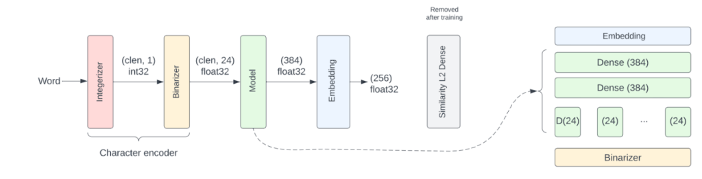 RETVec achieves these improvements by sporting a very lightweight word embedding model (~200k parameters), allowing us to reduce the Transformer model’s size at equal or better performance, and having the ability to split the computation between the host and TPU in a network and memory efficient manner.