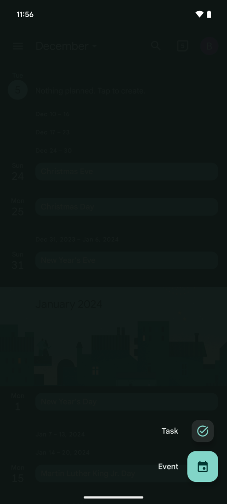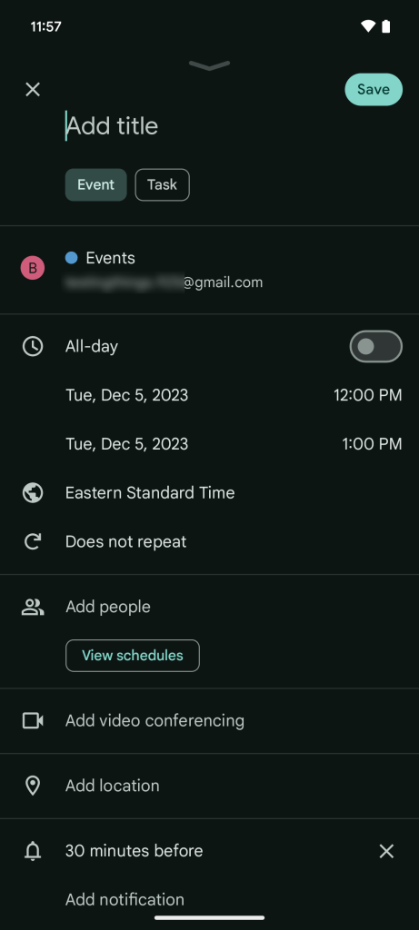 Behind the scenes of the latest Google Calendar for Android update (v2023.48.0), a tweak spotted by @AssembleDebug reveals that Google is adding support for a quick switcher when creating a new event that lets you switch between making a Calendar event or a task in Google Tasks (which also shows up in Calendar).