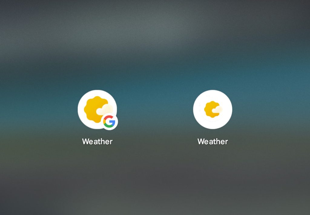 On one of our devices, “Weather” has appeared in the full app grid with a circular icon that depicts the sun and a cloud. If you look closely, you’ll notice how the circular logo is placed in another circle, thus shrinking the actual icon.