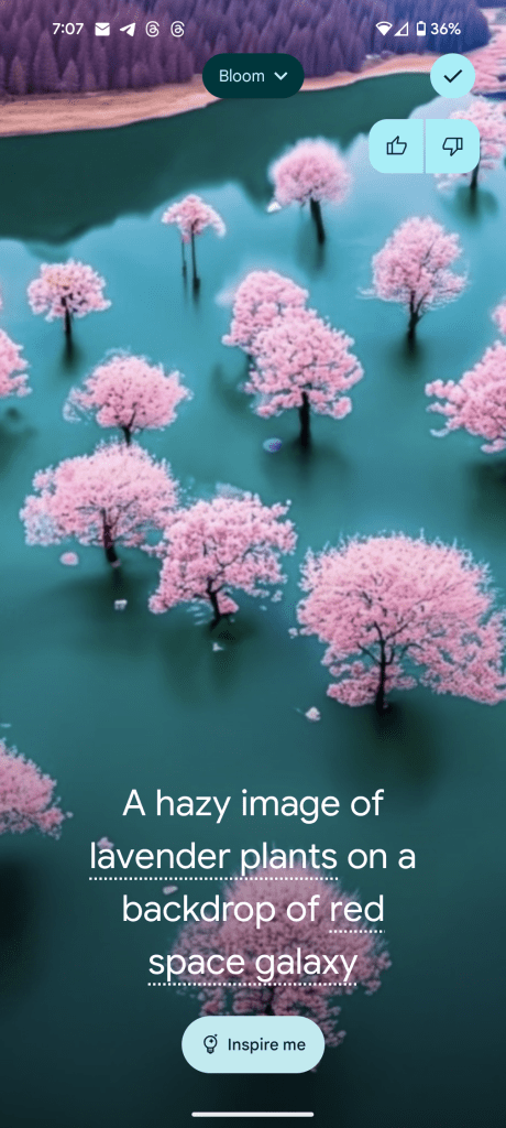 This was revealed by @BennettBuhner on Twitter/X, who posted screenshots this weekend from One UI 6.1 which show, among other things, generative AI wallpapers. Just like Google, users are given a general topic and then a set of options to create the wallpaper. In fact, the topic here, “Bloom” offers a prompt that says “a hazy image of lavender plants on a backdrop of red space galaxy.” And, on the Pixel 8 series, the exact same prompt is shown, with the same initial preview image.