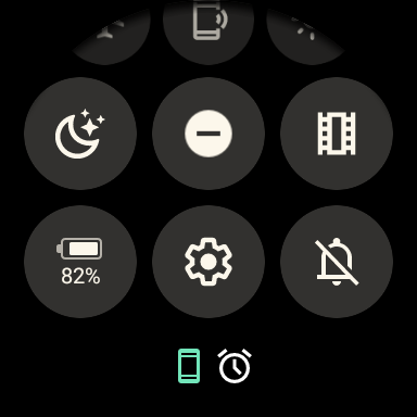 For some, blue icons appear in Quick Settings on the Pixel Watch 2 to replace the usual white. The background of each circle is still gray, while the row of status icons at the bottom is unchanged.