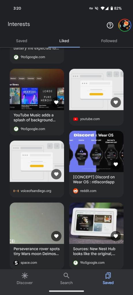 In late 2020, Google Discover introduced a “heart” button on articles to let you provide feedback on recommendations, and there is now an easy way to view all of your liked stories.