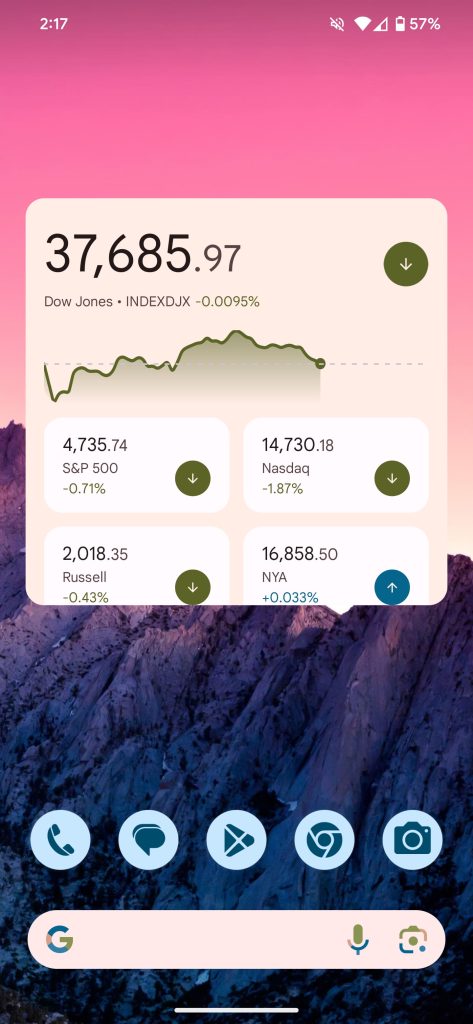 Where the current iteration focuses on clean visuals, primarily showing one particular stock’s current price and recent movement, the new widget adds a bit more utility. In the top-right corner, you’ll find an indicator of when the widget last refreshed its financial data.