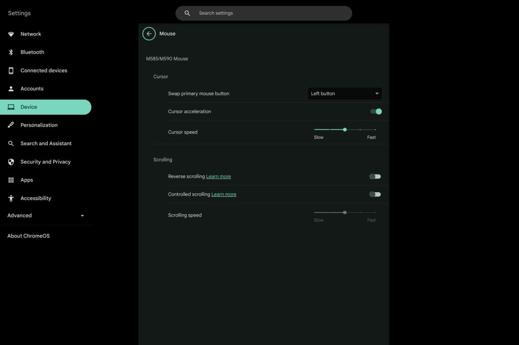 Previously grouped together with Touchpad, there’s now dedicated “Mouse” settings. In addition to Cursor speed, you can now control Scrolling speed, while there’s a new on/off toggle for scroll acceleration.