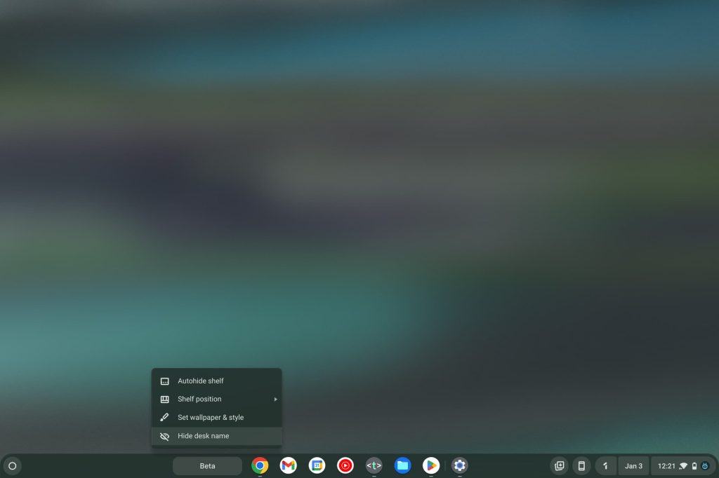 Version 120 adds a Virtual Desk Button to the ChromeOS Shelf that appears to the left of pinned app icons. Featuring the name of the current grouping, you can quickly switch between Desks with the left/right arrows that appear upon hover.