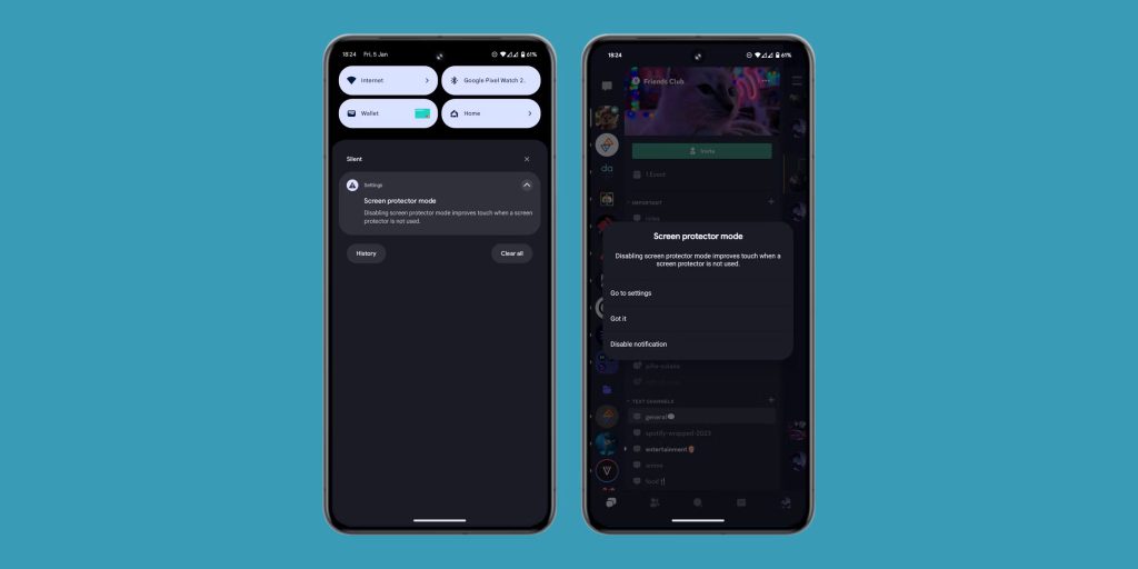 Recently, some users have noticed a notification appearing on Pixel 8 devices when a screen protector is installed or removed noting that Screen Protector Mode should be turned on or off. The feature was first spotted back in October, but hasn’t really appeared widely until recently. Some folks on Reddit note that they’ve seen it recently, though in my experience getting through a few screen protectors on my Pixel 8 Pro and my wife’s Pixel 8 since October, I’ve not seen the notification at all. That said, Screen Protector Mode is enabled on my Pixel 8 Pro, and I don’t recall doing that manually.