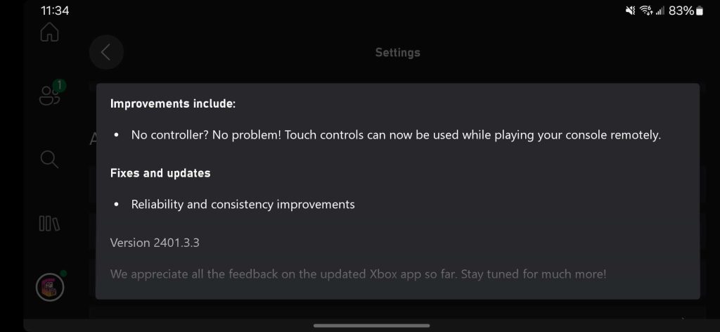 The addition is live on the latest Xbox beta on Android, version 2401.3.3. The Verge notes that it’s also live on iOS (screenshot below), but no version number was mentioned. The beta version of the Xbox app on Android is distributed through the Play Store as a separate download, and through TestFlight on iOS (though the beta program is currently full on iOS).