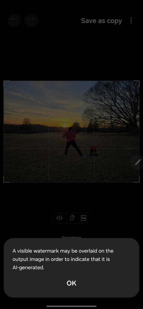 Some of the other new features are baked into the Gallery app for the sake of the camera. “Generative Edit” works like Google’s Magic Editor on Pixel, using generative AI to fill in the gaps when you move or remove an object in a photo. There’s no discernable difference between the two that I’ve noticed (besides Samsung adding a watermark to anything you export), but the perk on Samsung’s side is that you don’t have to back the photo up to a cloud account to make these edits.