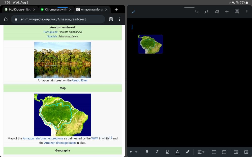 Chrome on Android tablets is nearly identical to the desktop interface given the use of tab strips and Omnibox layout. There’s also support for multiple windows to aid multitasking.