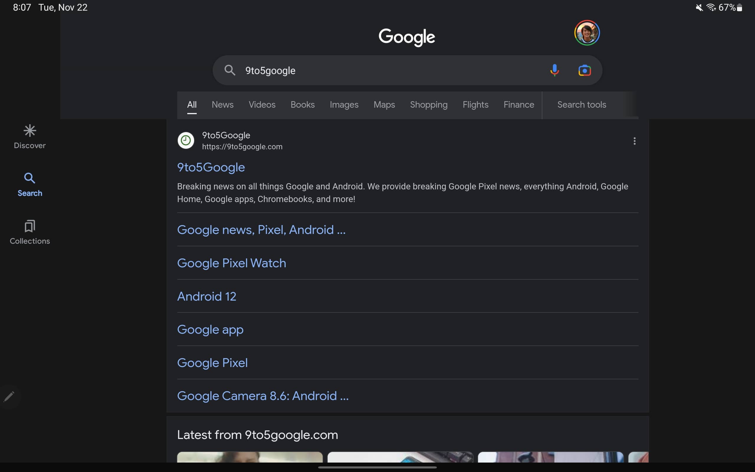 Update 11/24: The Google app has switched to (beta version 13.46) a navigation rail that’s positioned just above where you’d place your thumb rather than being centered, top, or bottom-aligned. It’s used for the Discover feed, Search results, and Collections tab.