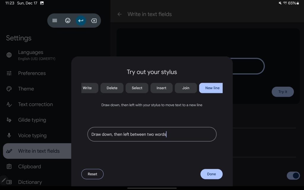 Update 12/22/23: Gboard’s new stylus handwriting support lets you “Write in text fields” with a stylus. Gestures let you delete, select, insert, join, and add a new line. As you write, a floating “keyboard toolbar” provides shortcuts, like the ability to launch an Emoji window and quickly switch languages. You can move this pill-shaped floating panel anywhere.