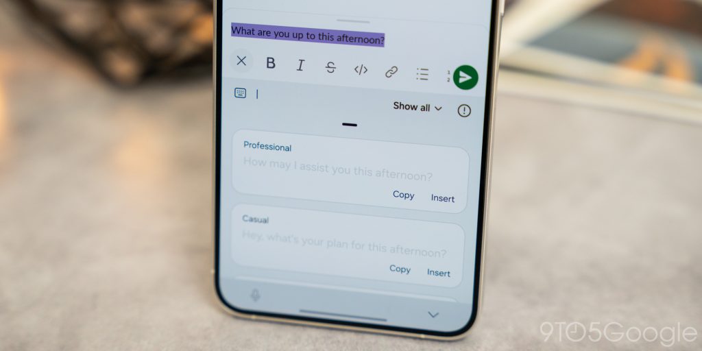 For instance, the Samsung Keyboard has taken on a few key AI features that have proven to be fantastic additions to the phone. A new AI generation button appears on the keyboard, and hitting it uncovers two options. First, it lets you completely change the written text’s writing style to anything from professional to polite. There’s even a setting to alter the text for social posts, which acts as a dedicated tag generator.