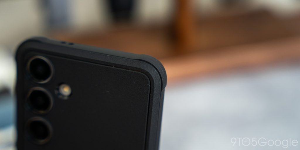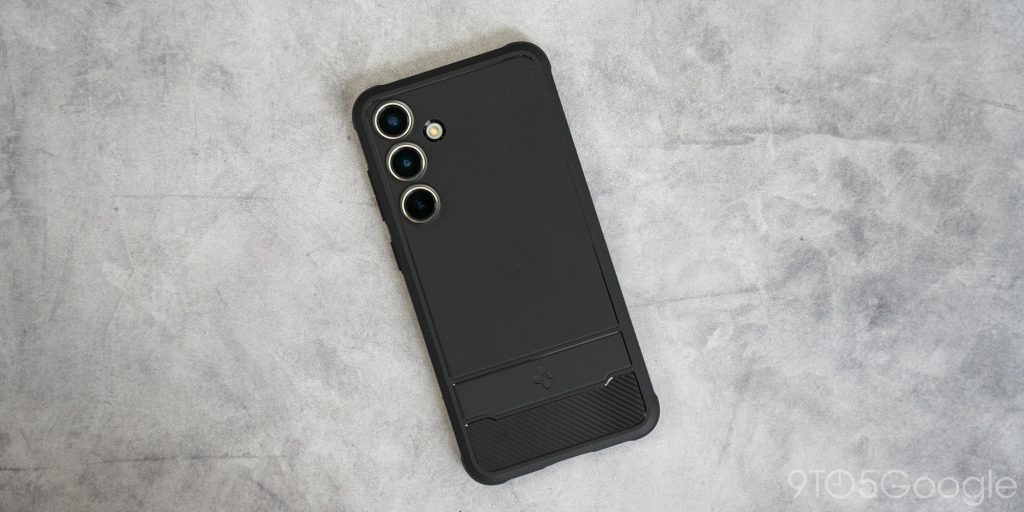 The Spigen Rugged Armor case fits right in the middle of heavy protection and minimal. It’s a flexible TPU case that’s easy to put on and take off in a second. It has a small corner bumper around each bend on the S24+ and offers a moderate amount of protection.